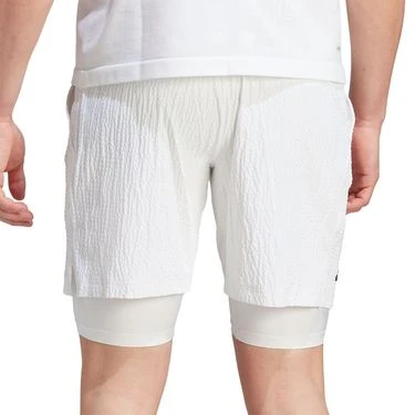 Take to the courts in the crisp whites of the adidas London Collection made for Wimbledon. The Aeroready Seersucker Short is a 2-in-1 short that features a stretch woven seersucker fabrication, pocket construction with integrated pleats, and a mesh inner leg gusset for freedom of movement and ventilation. Made with recycled, breathable, and high stretch AEROREADY materials.