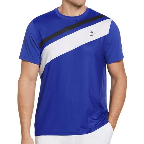 Gear up for the courts in the geometric prints of the Penguin Men’s Spring 2023 Collection. The Penguin Color Block Print Crew is a basic performance tee with color blocking details. Made with stretchy, moisture-wicking fabric.