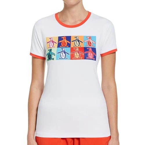 Strut your style on the courts this spring in the classic silhouettes and retro printed designs of the Penguin Women’s Spring 2023 Collection. The Penguin Pop Art Pete Performance Tee is a basic tee shirt with a printed front graphic and contrast color piping. Made with stretchy, moisture-wicking fabric.